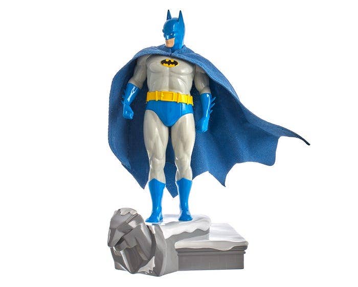 This 7.5” figure is a Jim Lee-style replica of the iconic retro Batman, perfect for displaying on a shelf or table.