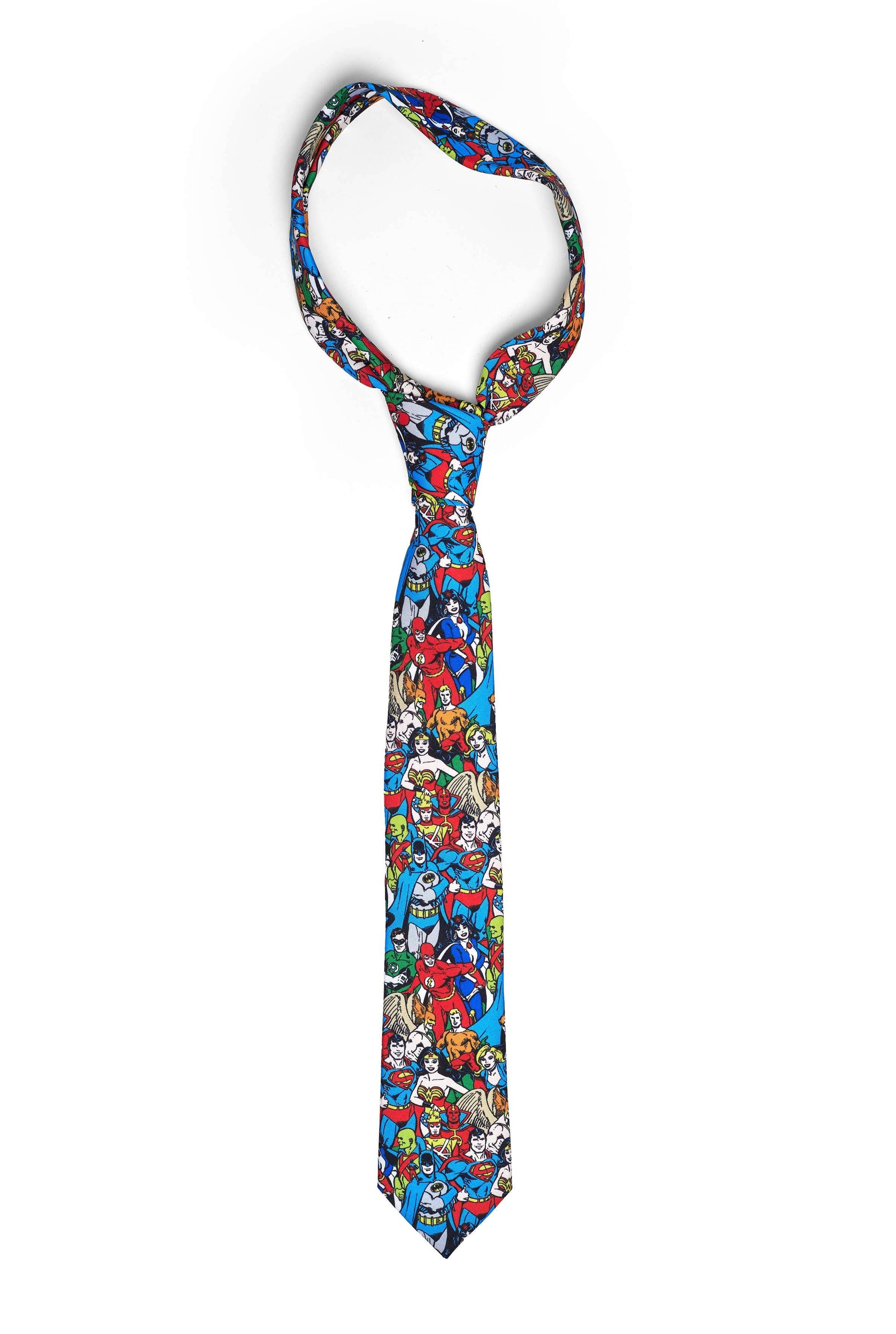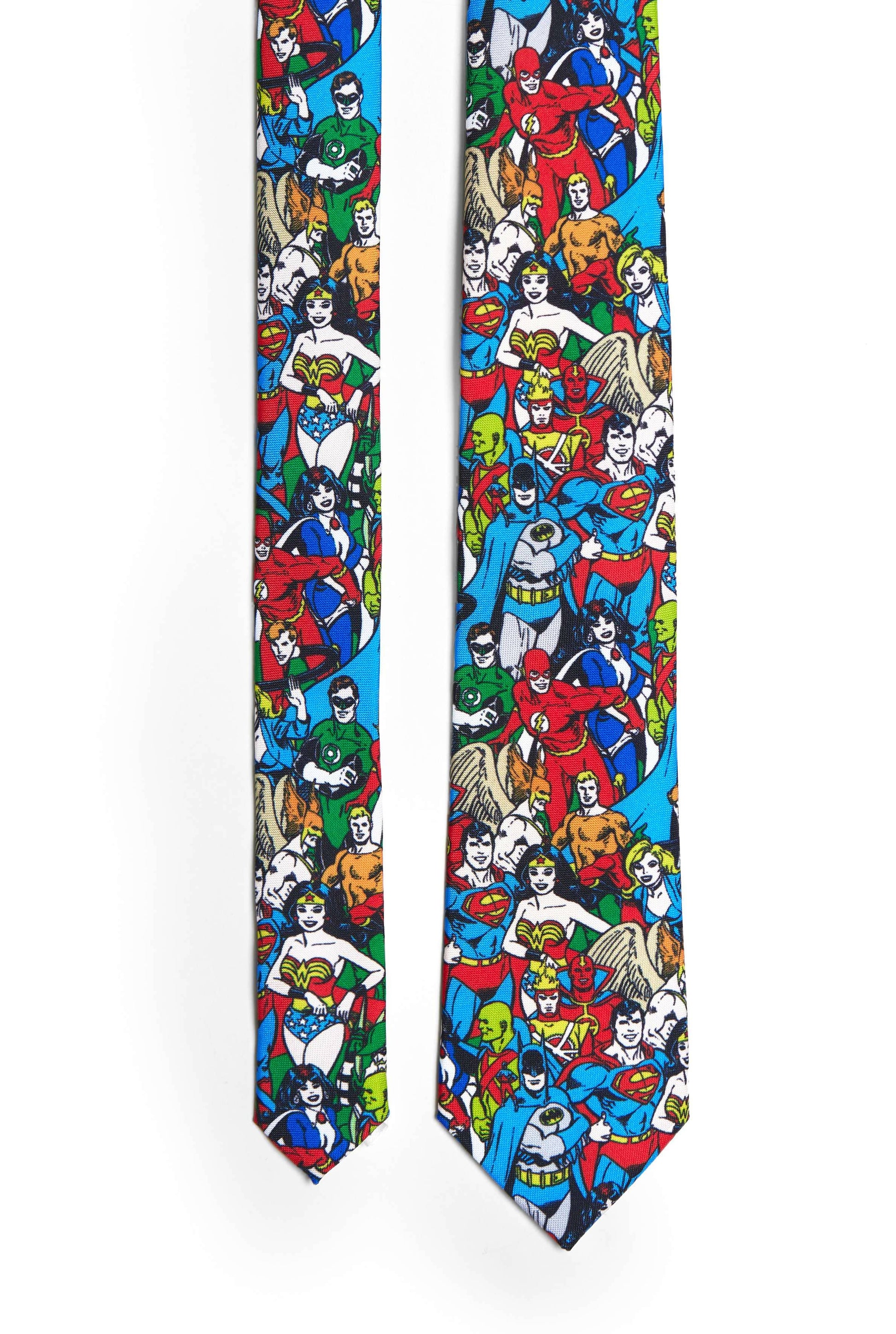 Add a touch of superhero style to your suit game. Featuring iconic Justice League members such as Batman, Superman, Green Lantern and Wonder Woman. This DC Comics™ Tie is the one of the best ways to show off your favorite heroes in the most subtle way.