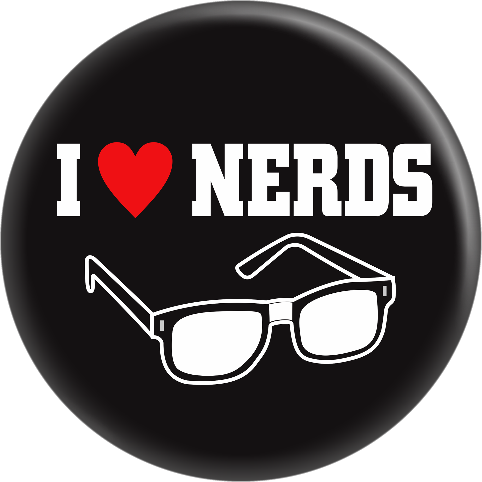 I love nerds (w/ Glasses, Heart) 1 inch Pin-on Button