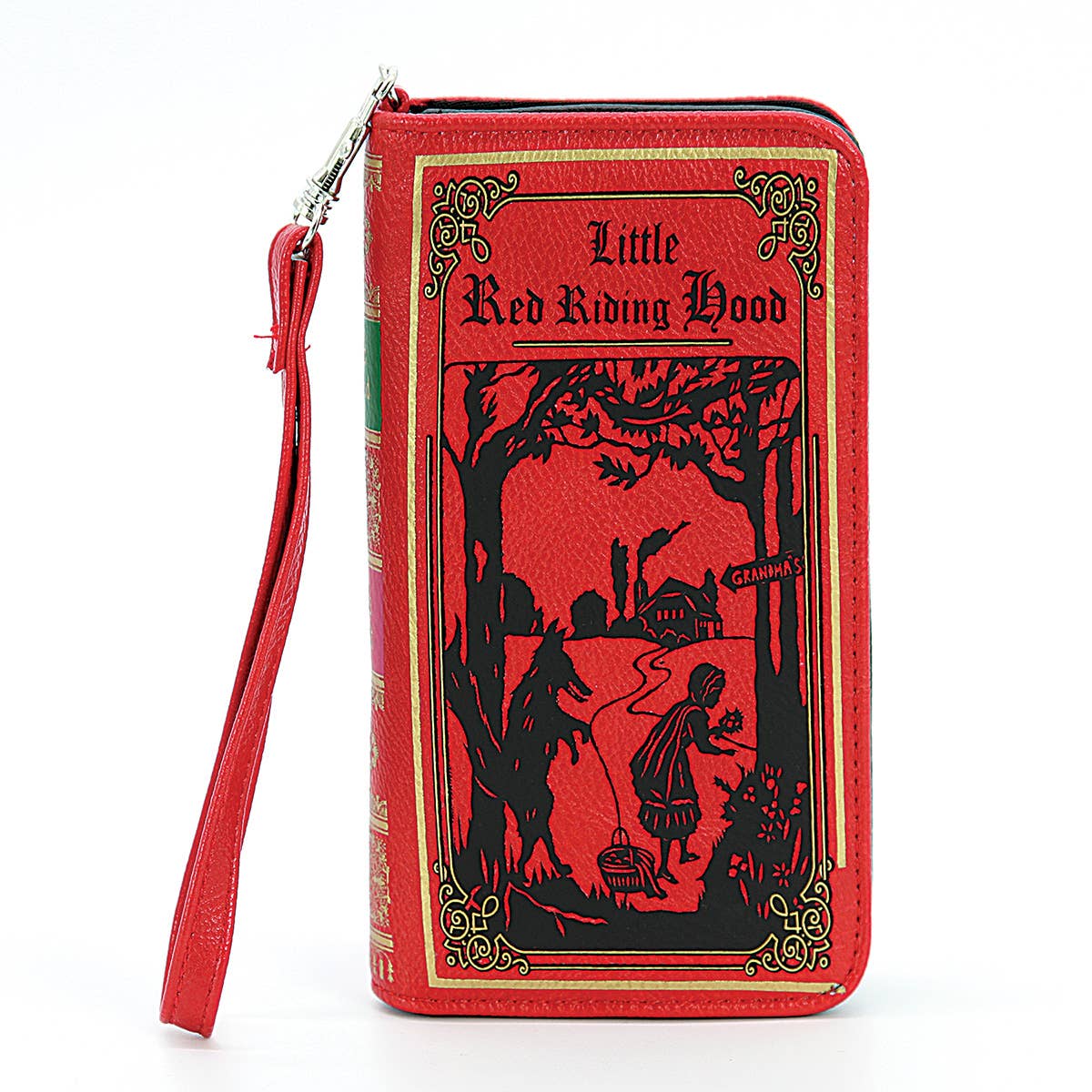 Look who's carryin' their own little Red Riding Hood story around! Our Little Red Riding Hood Book Wallet brings the classic fairytale to life with a whimsical printed vinyl wallet and golden wristlet strap. An unexpected combination of storybook and stylish, it's the perfect accessory for any mischief maker.