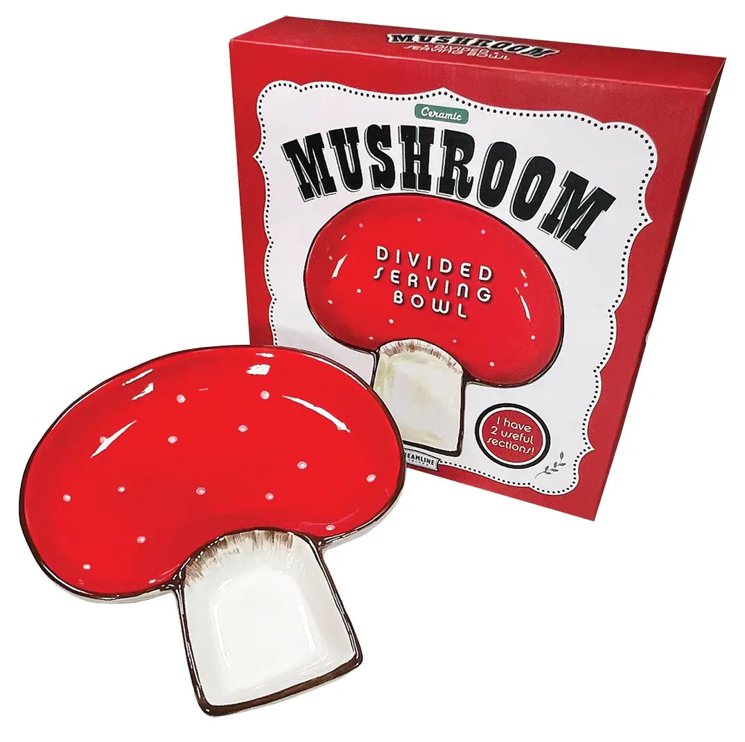 From chips and dip to cheese and crackers, no snack spread is complete without the delightful "fun-gi" - this two-section mushroom-shaped serving bowl! Crafted of ceramic, it'll add flavor to any fete.