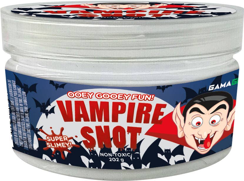 Experience the creepy-crawly fun of Vampire Snot Slime! Put your vampire powers to the test with this gooey, gloopy, and delightfully sticky slime. Oozing with spooky vibes, its grisly frosty hue will make your Halloween complete!